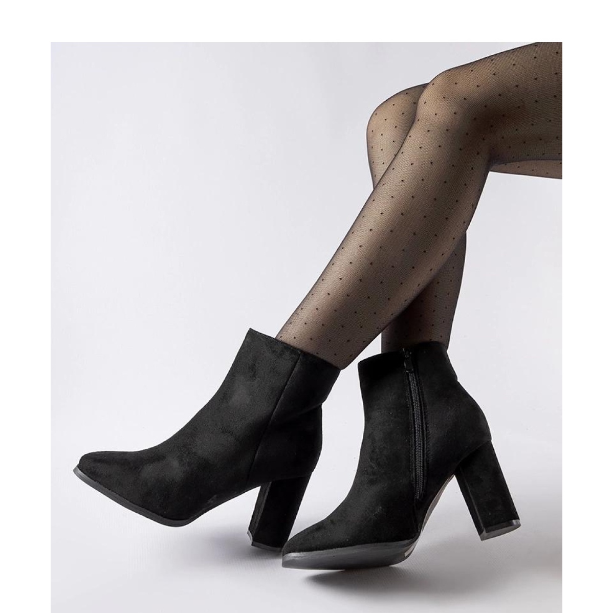 A fekete csizma minden modern nő szekrényének kulcsfontosságú eleme, kombinálva az egyedi stílus és a viselkedés kényelmét. Kiváló minőségű ökológiai velúr bőrből készült, ezek az elegáns cipők minimalista kialakításukkal örülnek, amely tökéletesen illeszkedik a jelenlegi trendekhez. A hosszúkás mandula lábujj stílust ad nekik, és a hangsúlyozott kocka miatt a lábak szépek és karcsúak.