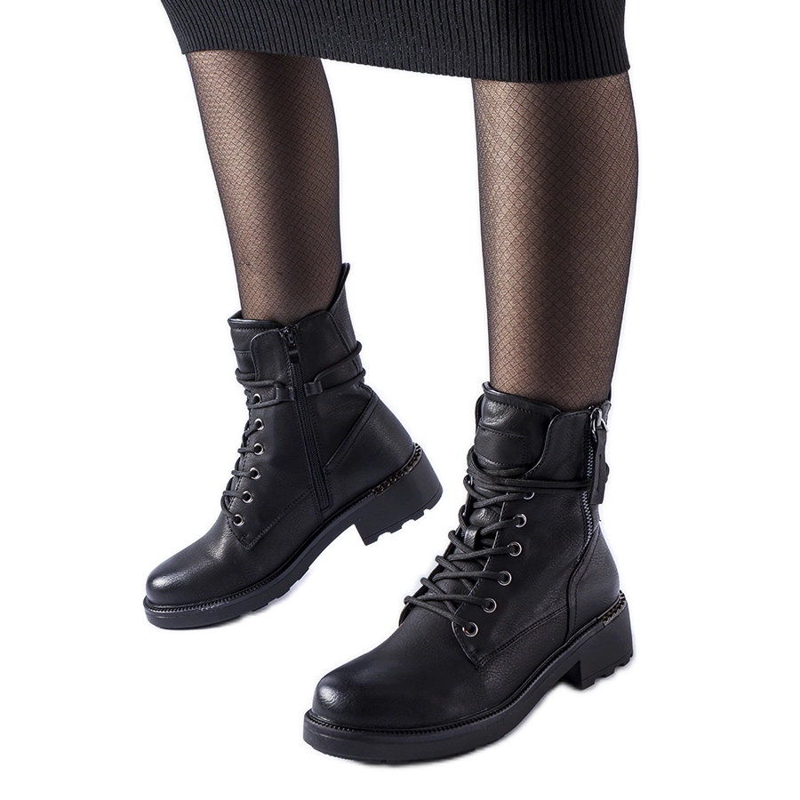 Fekete csizma dekoratív emaresi csúszkával - stílus és kényelem az őszi téli szezonhoz