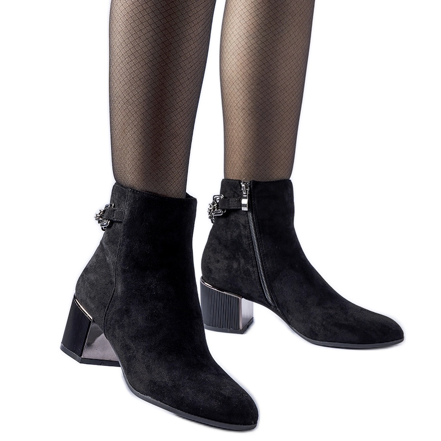 Részletek: Fekete bokacsizma Fenughedu öko-velúr lánccal