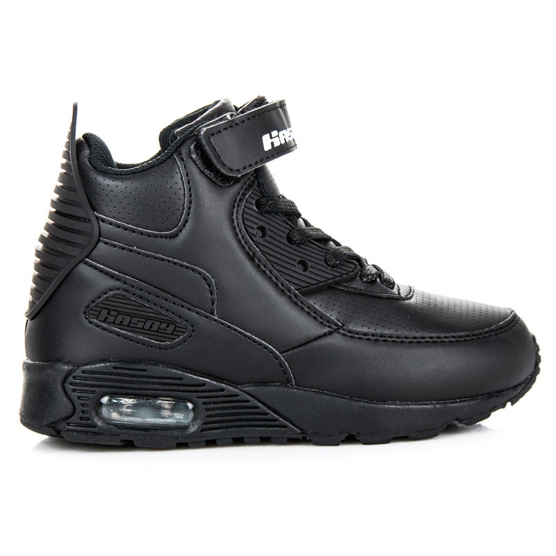Klasszikus, univerzális Hasby gyerekcipő, kiváló minőségű ökológiai bőrből. A boka feletti modell további támasztást nyújt a bokaízületnek, az egyszerű, fekete kialakítás pedig alkalmassá teszi a lábbelit a hétköznapi és kicsit formálisabb stílusokhoz egyaránt - lányoknak és fiúknak.