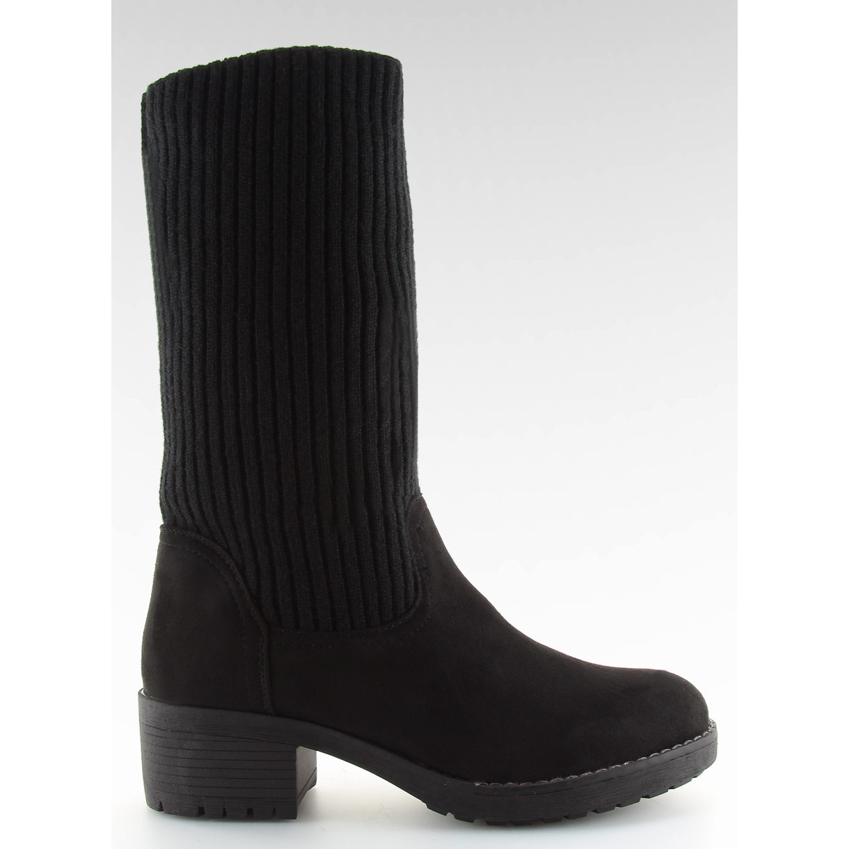 Részletek: Fekete bokacsizma kötött felsőrésszel