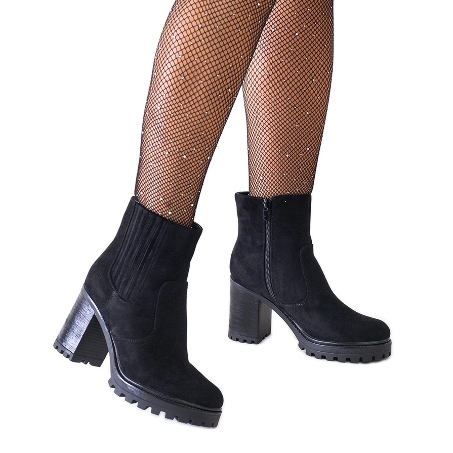 Részletek: Fekete bokacsizma masszív magas sarkon, öko-velúr Dunyana