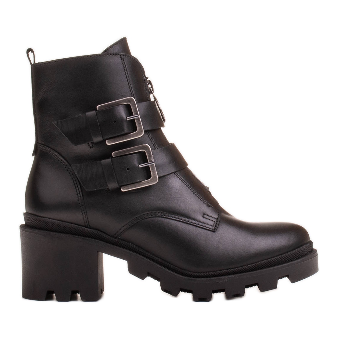 Marco Shoes Marco Shoes Fekete bőr bokacsizma vastag és könnyű talpon
