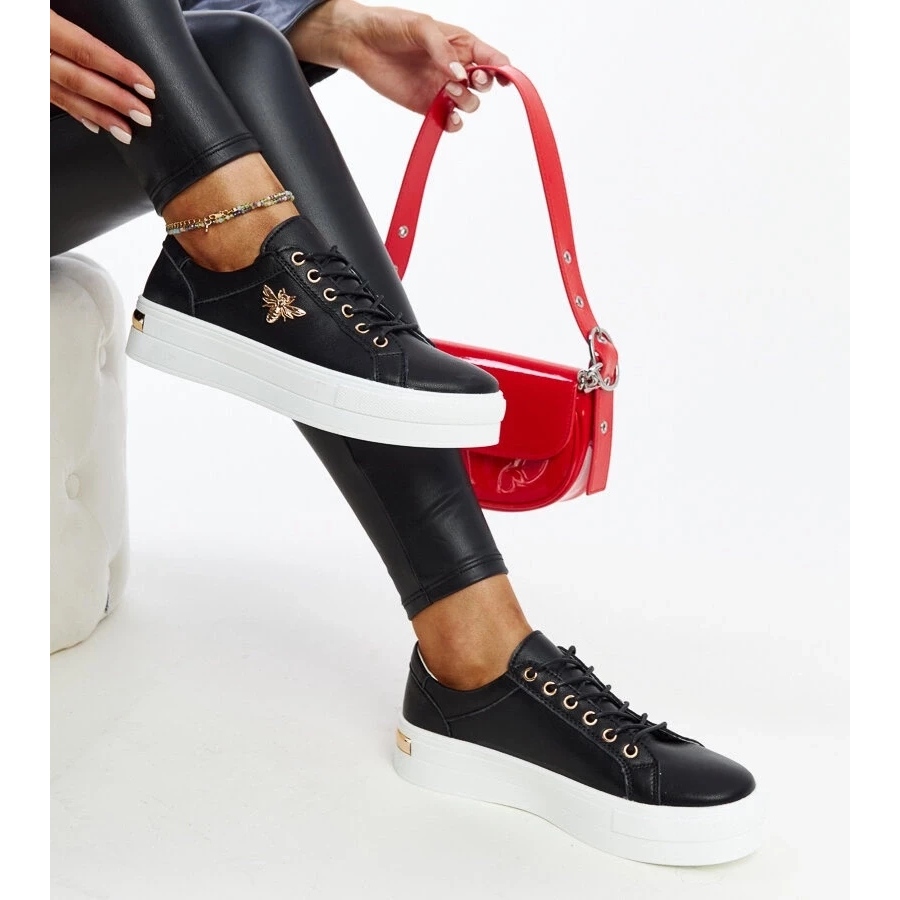 Inna marka Fekete bőr cipők a Mikka vastag talpán