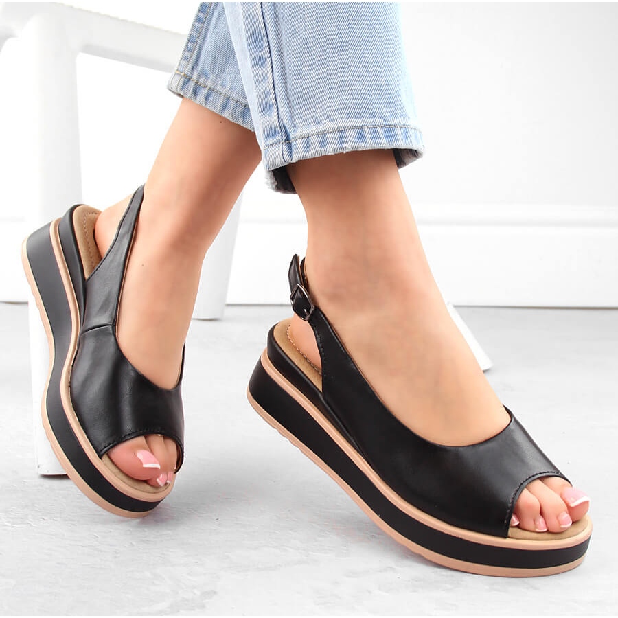 Részletek: Fekete bőr női szandál Filippo DS6153 platformon