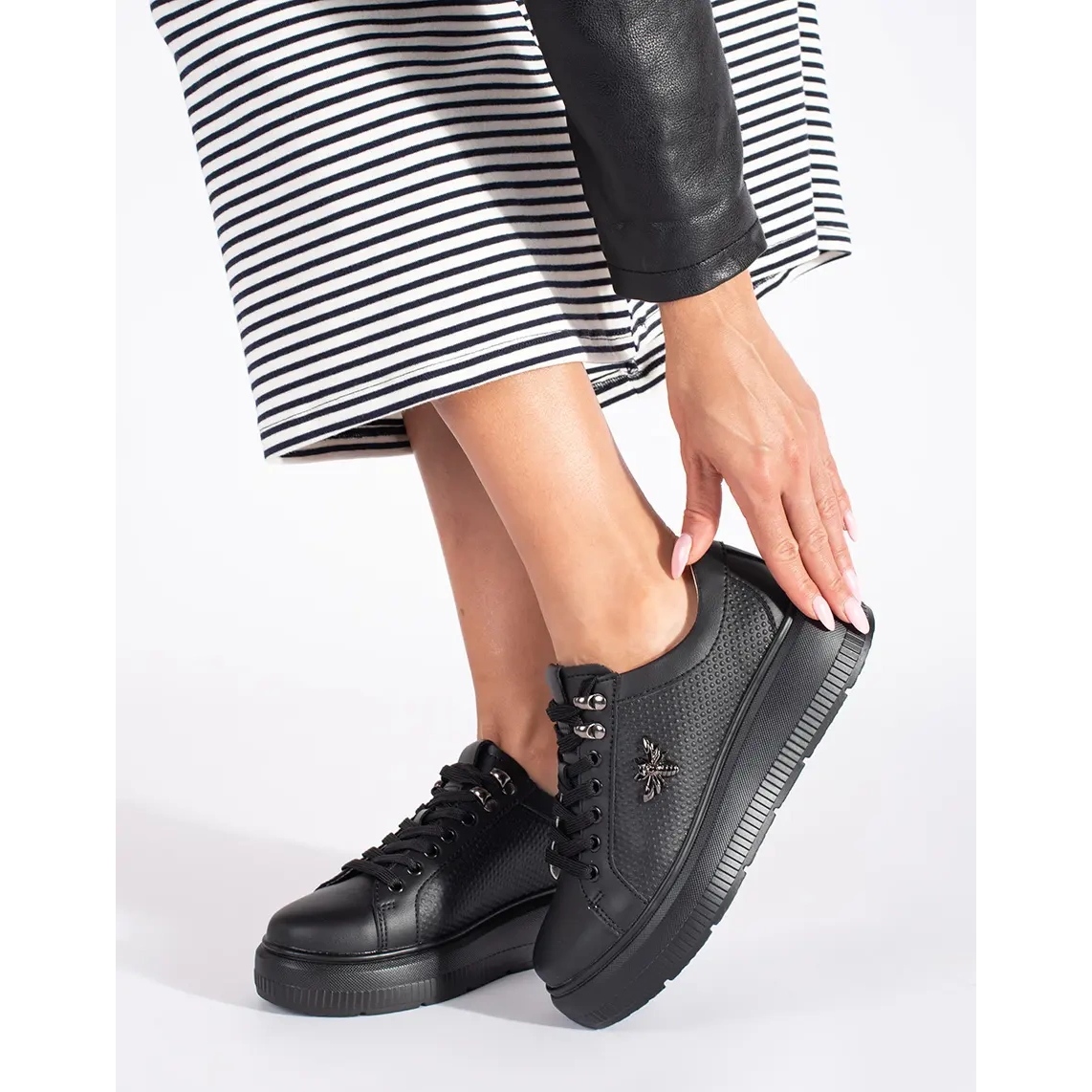 A platformon lévő fekete cipők minden divatos nő szekrényében kötelező. Rendeljen még ma, és derítse ki, mennyire könnyű kombinálni a kényelmet az eleganciával!
