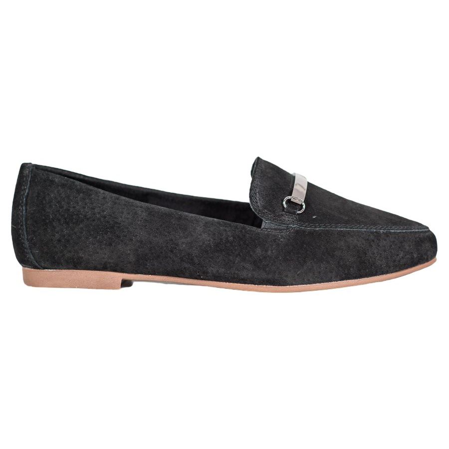A Filippo mokaszinok egy elegáns ajánlat azoknak a nőknek, akik kényelmes és stílusos mindennapi cipőt keresnek. A teljes egészében természetes bőrből készült fekete lordok a klasszikus dizájnt modern díszítéssel ötvözik. Lekerekített orruk és a hátoldalon található dekoratív, fényes csat egyedi karaktert kölcsönöz nekik.