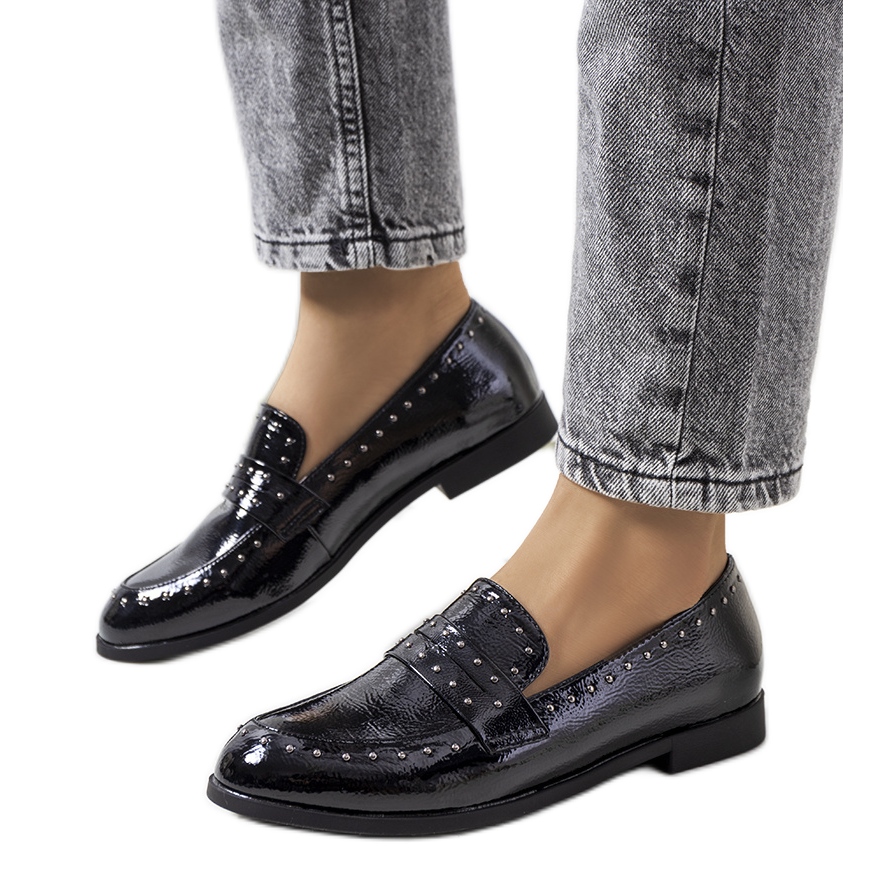 Inna marka Fekete bőrcipő Rozerin szegecsekkel