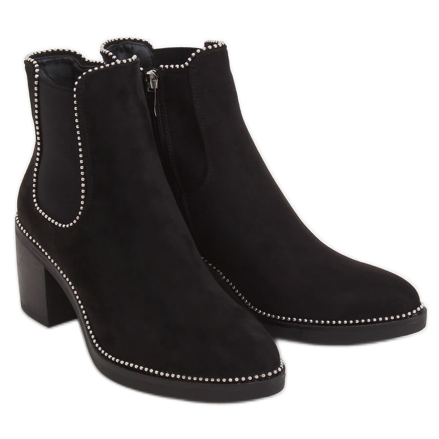 Fedezze fel a fekete Chelsea 15672 Black csizma eleganciáját és kényelmet. Ezek a női velúr bokacsizmák nem csak stílusos szabásukkal, hanem széles, 7 cm magas sarkával is megkülönböztethetők, amely nőies bájt kölcsönöz és kiemeli az alakot. A gumibetéteket és talpakat körülvevő finom ezüstgolyók egyedi karaktert kölcsönöznek nekik, így biztosan felkeltik a figyelmet.