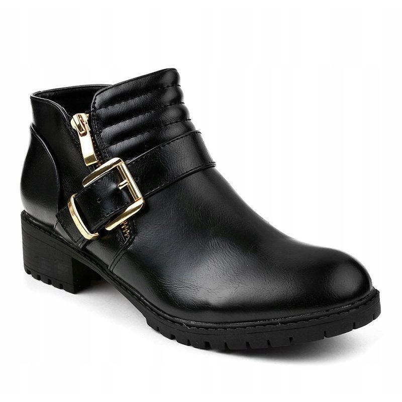 A csizmák széles, négy centiméteres tömb alakú sarokkal gyönyörködnek, amelyek viselés közben stabilitást és kényelmet biztosítanak. A kerek lábujjak finomságot, a dekoratív csatos pántok és az arany cipzárak pedig egy csipetnyi modernitást kölcsönöznek. A cipzárnak köszönhetően a cipő fel- és levétele gyors és egyszerű.