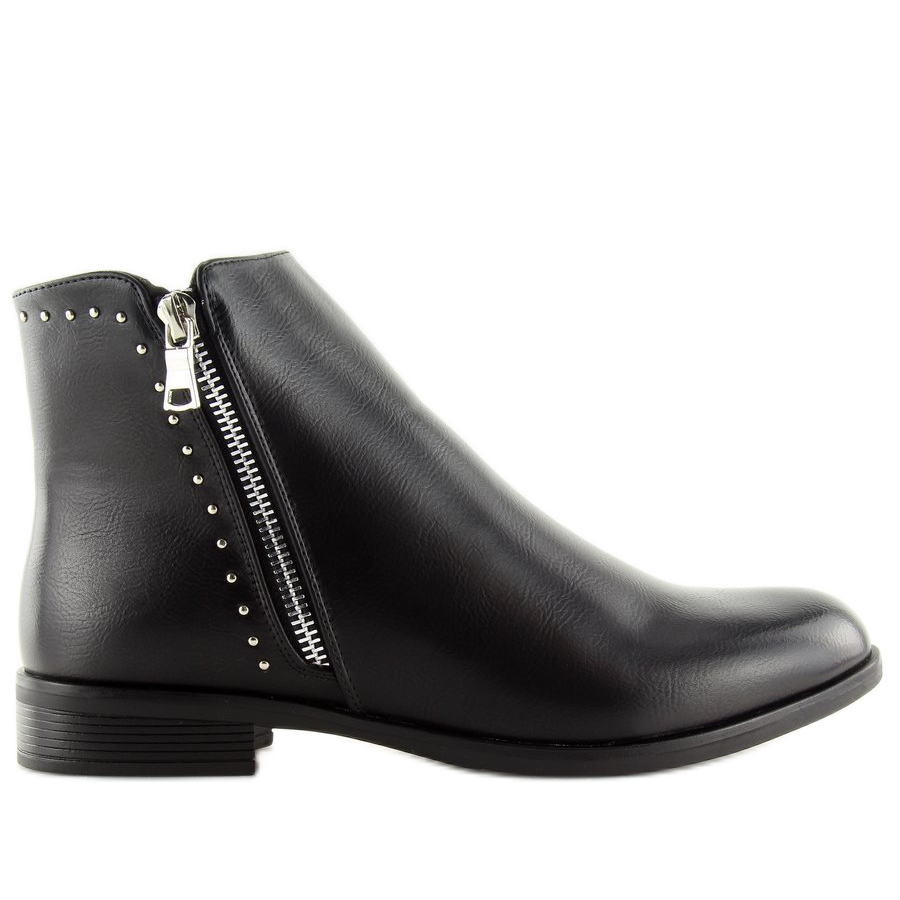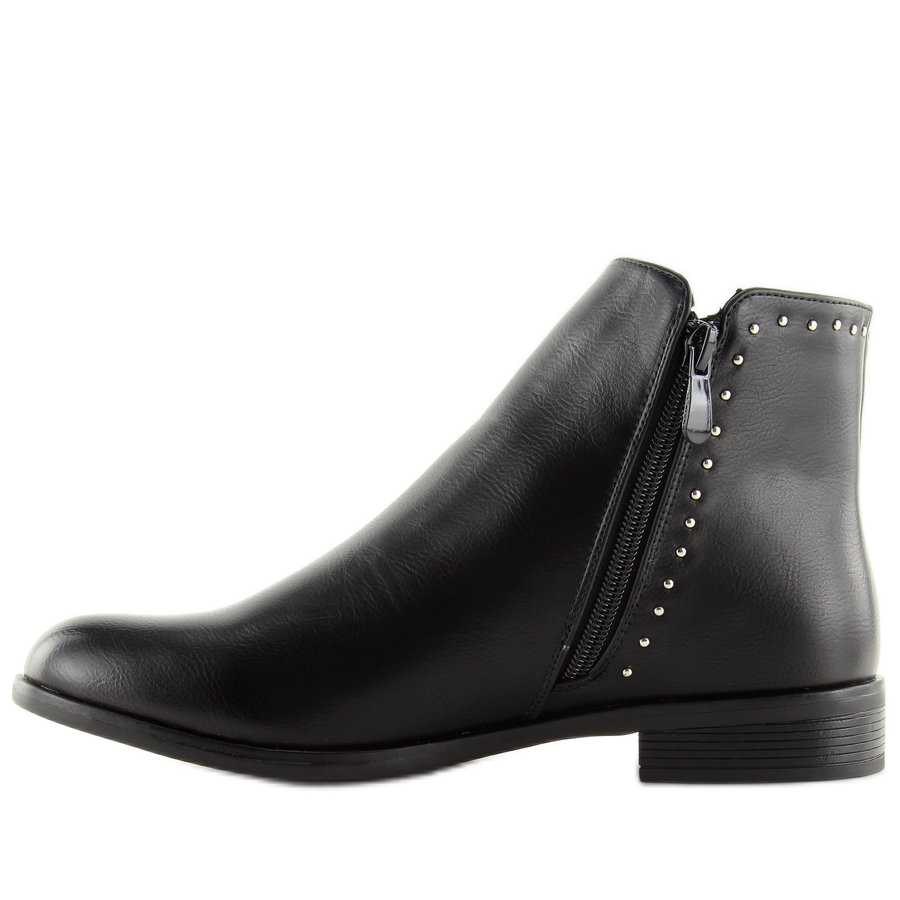 Női fekete Chelsea csizma 0-257 Black egy egyedi modell, amely a klasszikus dizájnt modern elemekkel ötvözi. Az ökológiai bőrből készült elegáns bokacsizma tökéletes mindennapi viseletre és különleges alkalmakra. Ezüst cipzárral és szemet gyönyörködtető szegecsekkel díszített felsőrészük egyedi karaktert kölcsönöz nekik, felhívják magukra a figyelmet és stílust adnak minden stílushoz.
