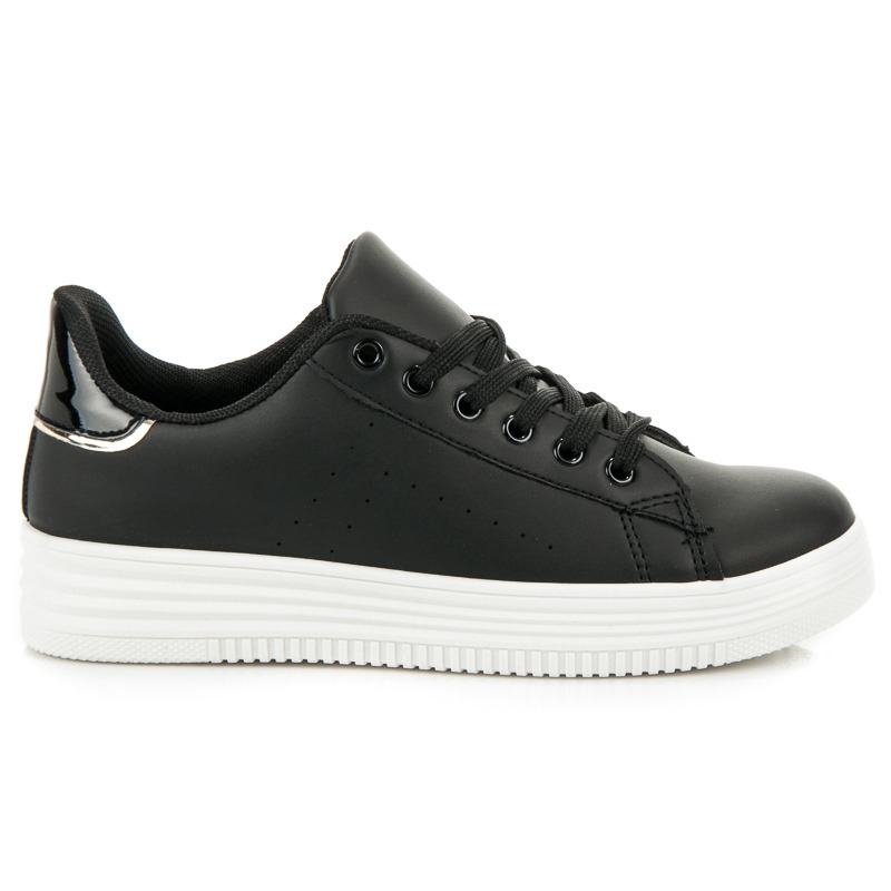 A fekete platformú tornacipő ideális választás azoknak a nőknek, akik a kényelmet a divatos megjelenéssel szeretnék kombinálni. A kiváló minőségű ökológiai bőrből készült, alacsony cipő nem csak elegáns megjelenésű, de környezetbarát is.