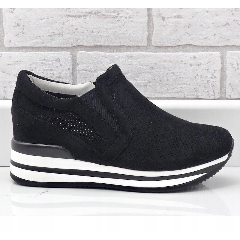 Részletek: Fekete cipők áttört ékekkel RQ259
