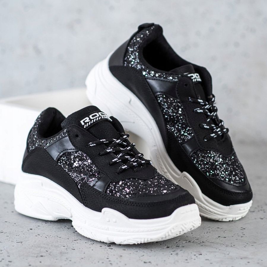 A SHELOVET fekete csillámos tornacipői tökéletes választás aktív nők számára, akik a kényelmet a divatos megjelenéssel szeretnék kombinálni. A kiváló minőségű műbőrből készült, alacsony sportcipő tökéletes a mindennapi formázáshoz és a hétköznapi alkalmakhoz is.