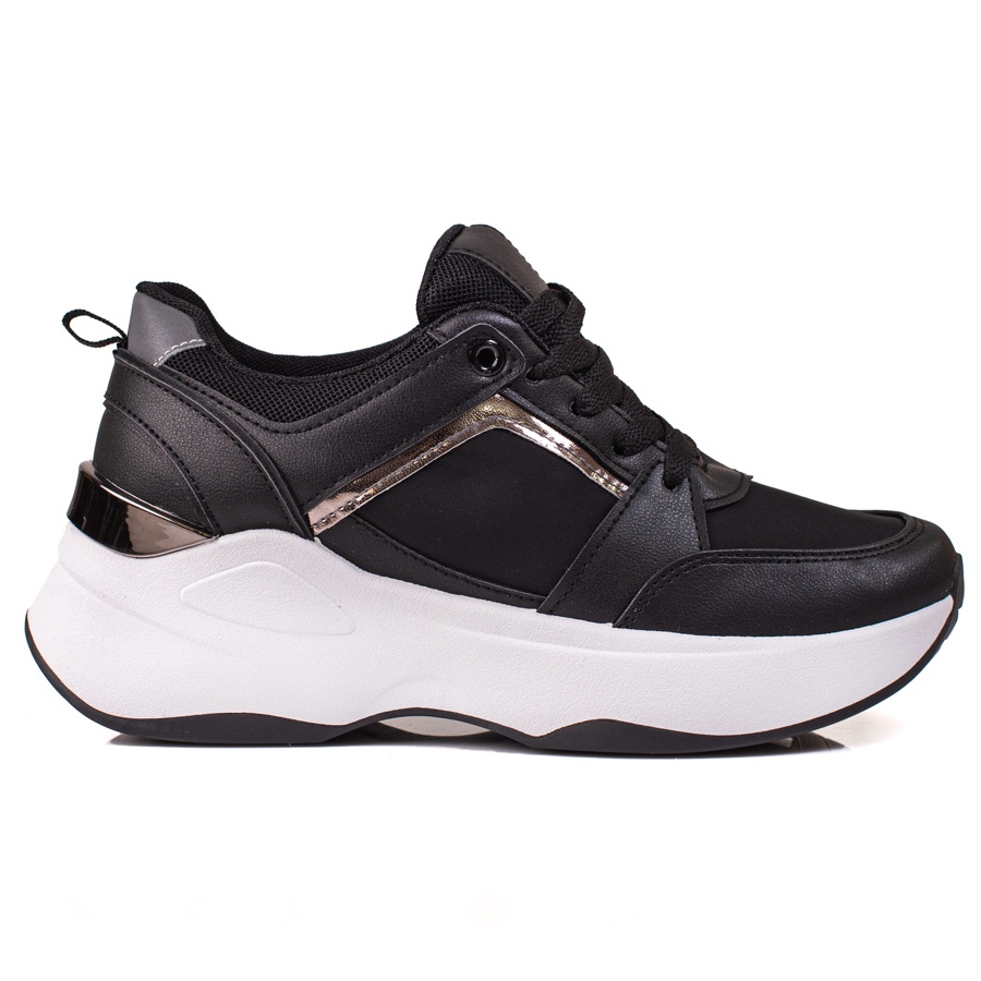 A fekete színek és a lezser stílus miatt ezek a cipők tökéletesen passzolnak különféle stílusokhoz, a farmertől a sport leggingsig. A futófelülettel ellátott gumitalp kiváló tapadást garantál, az 5 cm magas platform pedig finom eleganciát ad, miközben biztosítja a kényelmet.