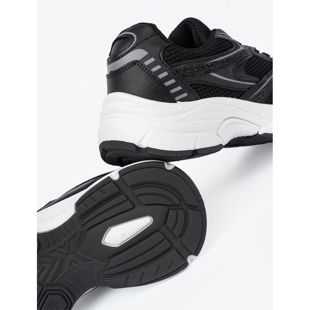 Fedezze fel a sport -eleganciát a fekete cipőkkel, amelyek tökéletesen kombinálják a stílust a kényelemmel. Ezek a női sportcipők minden nap tökéletes választás, nemcsak divatos formatervezést, hanem funkcionalitást is kínálva. Kiváló minőségű anyagokból készül, a bőr domináns utánzásával és a textil kivitelével, garantálja a tartósságot és a kényelmet minden lépés során.