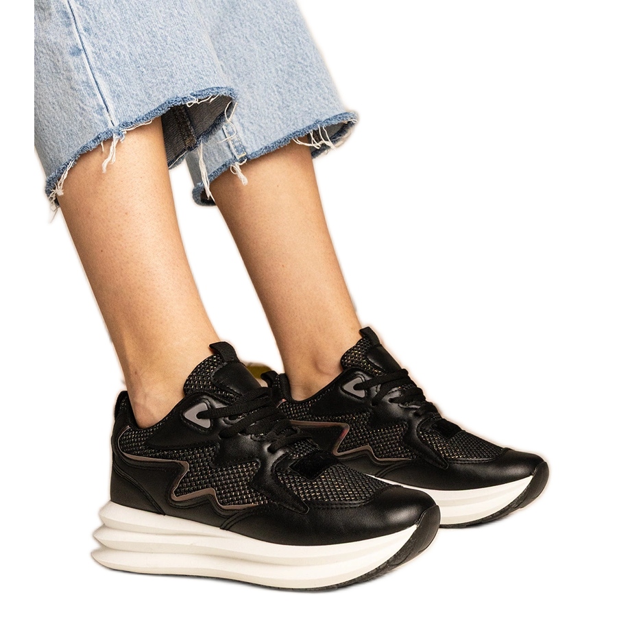 Bemutatjuk a J026 Black Sneakers -t, amely tökéletesen illeszkedik a legújabb divat trendekbe, és minden lépésben biztosítja a kényelmet. Ezek a női sportcipők modern formatervezésüknek köszönhetően vonzzák a figyelmet, és a jellegzetes holografikus elem egyedi stílust ad nekik.