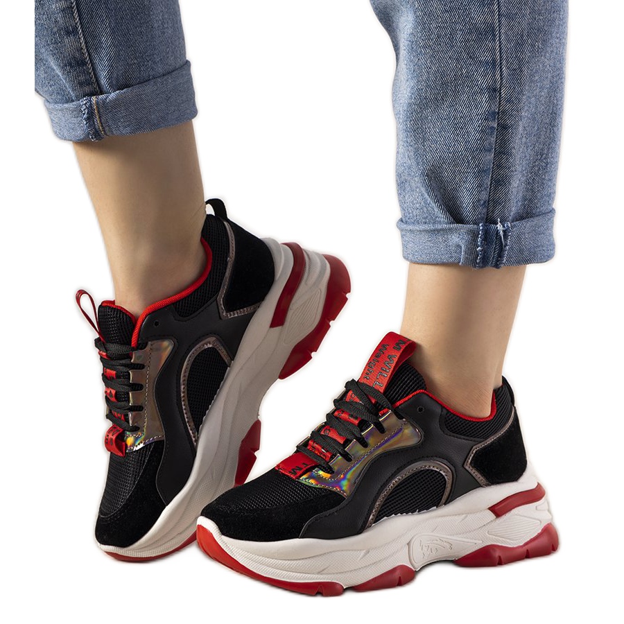 A holografikus betétes Black Freedom tornacipők kötelező részei a ruhatáradnak, ha minden nap nagyra értékeled a stílust és a kényelmet. Ezek a sportcipők a divatos dizájnt és a funkcionalitást ötvözik, így tökéletesen passzolnak a különböző stílusokhoz. A fekete, piros és holografikus ékezet kombinációja minden bizonnyal felkelti a figyelmet, és karaktert kölcsönöz minden ruhának.