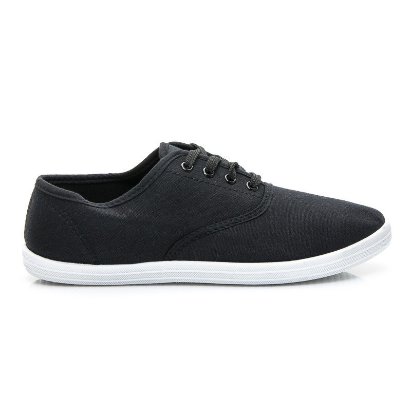 Íme a kényelem és a stílus tökéletes kombinációja - fekete Wind tornacipő, amely minden divatos nő számára biztosan tetszeni fog. Kiváló minőségű anyagból készült, alacsony szárú tornacipő tökéletes választás a mindennapi viselethez. A kerek orr kényelmes viseletet biztosít, az univerzális fekete szín pedig sokféle stílushoz passzol – a hétköznapitól az elegánsabbig.