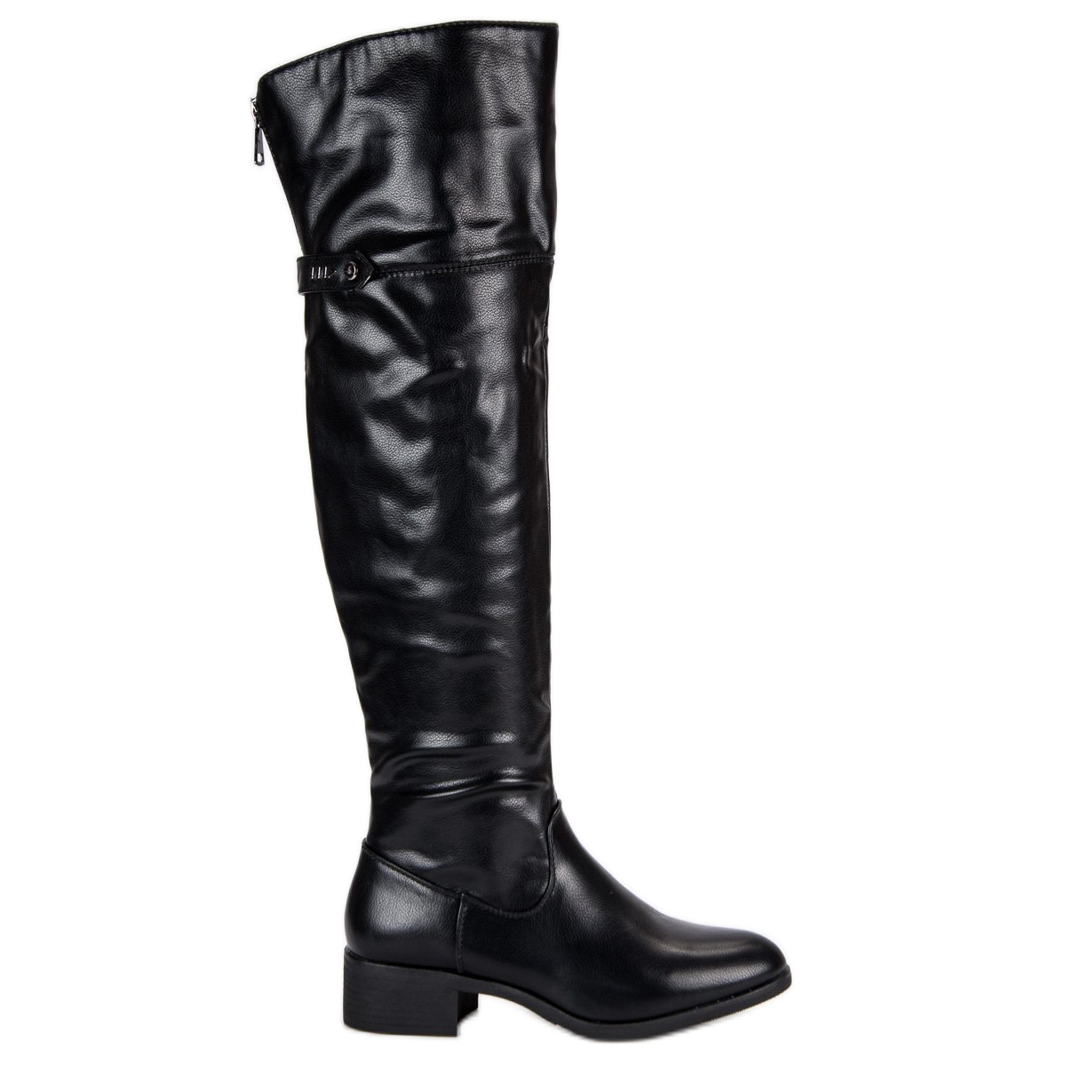 A fekete cipzáras muskétások az elegancia és a kényelem szinonimája, amelyek tökéletesen ötvözik a stílust a praktikummal. Erős ökológiai bőrből készült, ez a térd feletti felsőrésszel rendelkező hosszú csizma tökéletesen kiemeli a női alakot, miközben optimális védelmet nyújt a hideg szél ellen. A modellt az egyszerű, klasszikus szabás jellemzi, amitől minden nő különlegesnek érzi magát bennük.