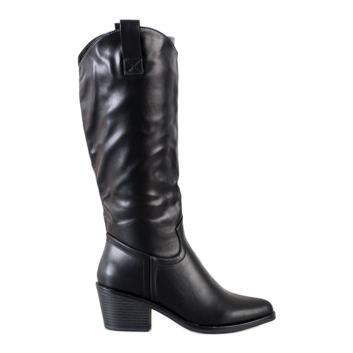 A SHELOVET fekete cowboy csizma minden divatos nő számára kötelező darab, aki értékeli a stílust és a kényelmet. Ezek az elegáns, kiváló minőségű ökológiai bőrből készült cipők tökéletesen ötvözik a klasszikus szabást a modern dizájnnal. Fekete színük miatt sokféle stílushoz passzolnak – hétköznapi és elegánsabb különleges alkalmakra egyaránt.