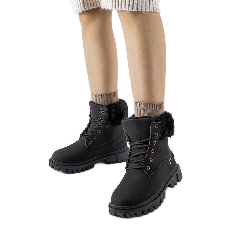 Fekete csizma Albert dekoratív szőrme - Stílus és hő hideg napokra