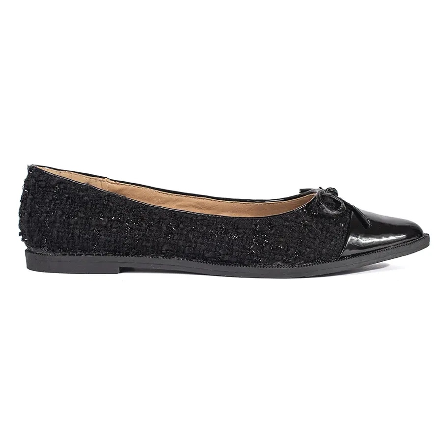 A balerinák kiváló minőségű szintetikából készülnek, ami tartós és könnyen ápolható. Az eredeti fekete szín stílust ad nekik, és a csillogó akcentus egy kis ragyogást ad nekik, tökéletes minden alkalomra - mind naponta, mind formálisabb kimenetekhez. A cipő elejére helyezett íj hangsúlyozza romantikus karakterüket, és rendkívül nőiessé teszi őket.