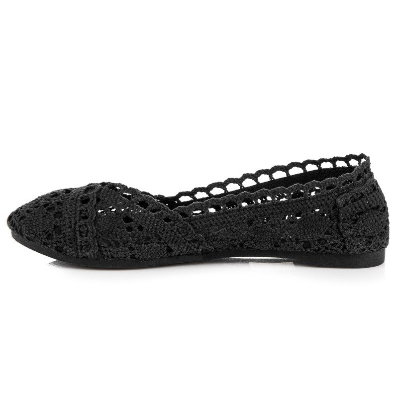 A balettlakásokat áttört minta jellemzi, amely könnyedséget és egyedi varázst ad hozzájuk. A fekete felület hihetetlenül univerzálissá teszi őket - tökéletesek a mindennapi stílushoz és az elegáns ruhákhoz különleges alkalmakra. A kerek orr és a mindössze 1 cm-es sarokmagasság egész napos viselési kényelmet biztosít, anélkül, hogy feláldozná a divatos megjelenést.