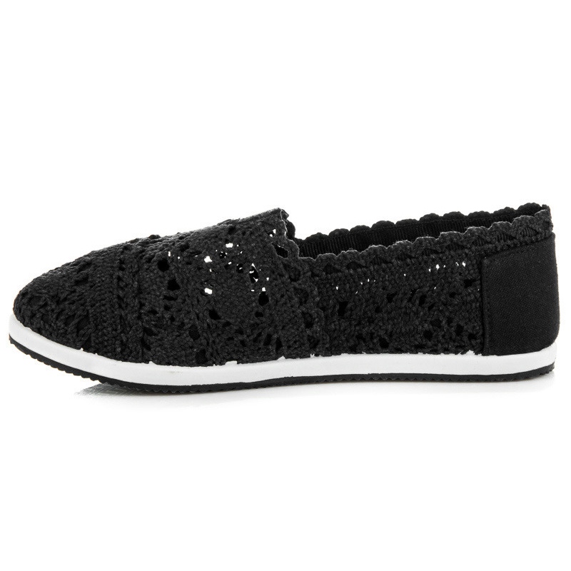 Az áttört csipkemintának köszönhetően a fekete slip-onok nem csak dizájnjukkal gyönyörködtetnek, de tökéletesen passzolnak a különféle hétköznapi stílusokhoz is. Könnyen kombinálhatók farmerekkel, szoknyákkal vagy más ruhadarabokkal, divatos és kényelmes mindennapi megjelenést biztosítva.
