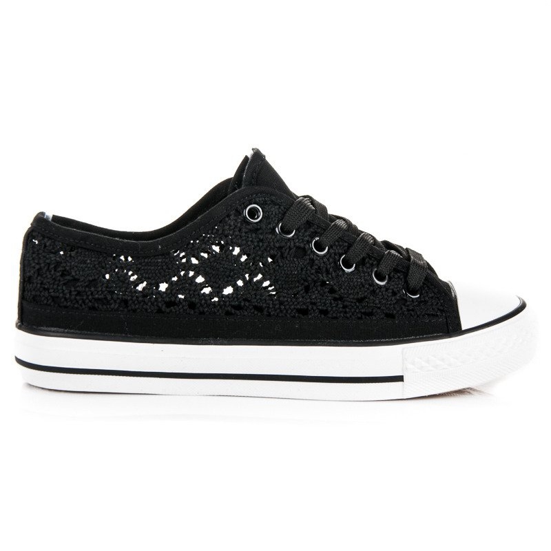 Bemutatjuk az Inna márka fekete csipke tornacipőit - tökéletes választás azoknak a nőknek, akik értékelik a stílust és a kényelmet. Ezek az alacsony tornacipők praktikus fűzős rögzítéssel tökéletesen illeszkednek a lábfejhez, biztosítva a mindennapi viselet kényelmét.