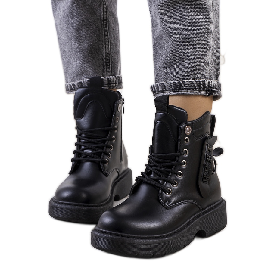 A BM gyártó stílusos fekete Denna platformcsizmája tökéletes választás minden divatos nő számára, aki elegánsan és kényelmesen szeretne kinézni. A közelgő őszre tervezett Denna modell a vonzó dizájnt és a funkcionalitást ötvözi. A gumiból készült magas talp kiváló szigetelést biztosít a hideg talaj ellen, így a csizma tökéletes a hidegebb napokra.