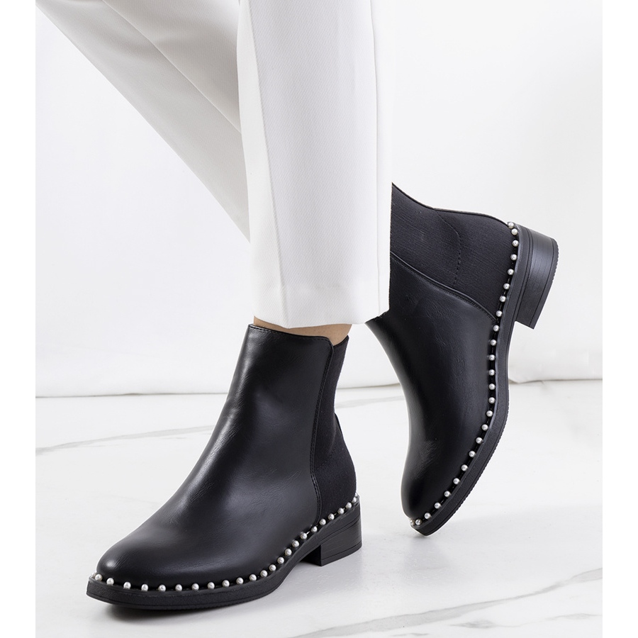 Az elegáns, beépített pinnella csizmák tökéletesen kiegészítik az őszi és a téli stilizációkat. Klasszikus kockás vágás, szabálytalan boka felső és gyakorlati hurokkal, amely megkönnyíti a kényelmet a divatos kivitelben. A gyöngy utánzattal díszített finom, 3 cm -es sarok és egy lapos, gumi talp finom karaktert ad a cipőhöz, és a strasszok és csapok hangsúlyozzák a modell modern jellegét.