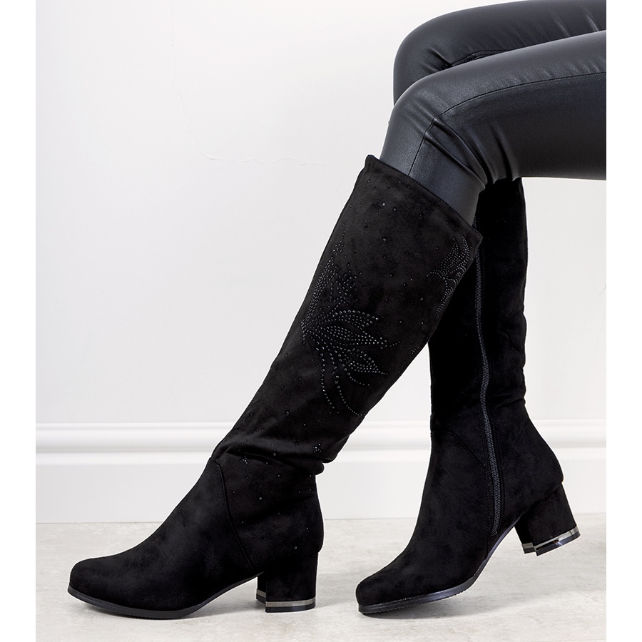 Ez a Willka modell fekete, hőszigetelt magas sarkú csizmája, amely tökéletesen kiegészíti az őszi-téli ruhatárát. Elegáns, velúr ökobőrből készült csizma tökéletesen ötvözi a stílust és a kényelmet. A finom cirkónia díszítés eleganciát és egyedi karaktert kölcsönöz nekik, a klasszikus szabásnak köszönhetően pedig sok stílushoz passzolnak.