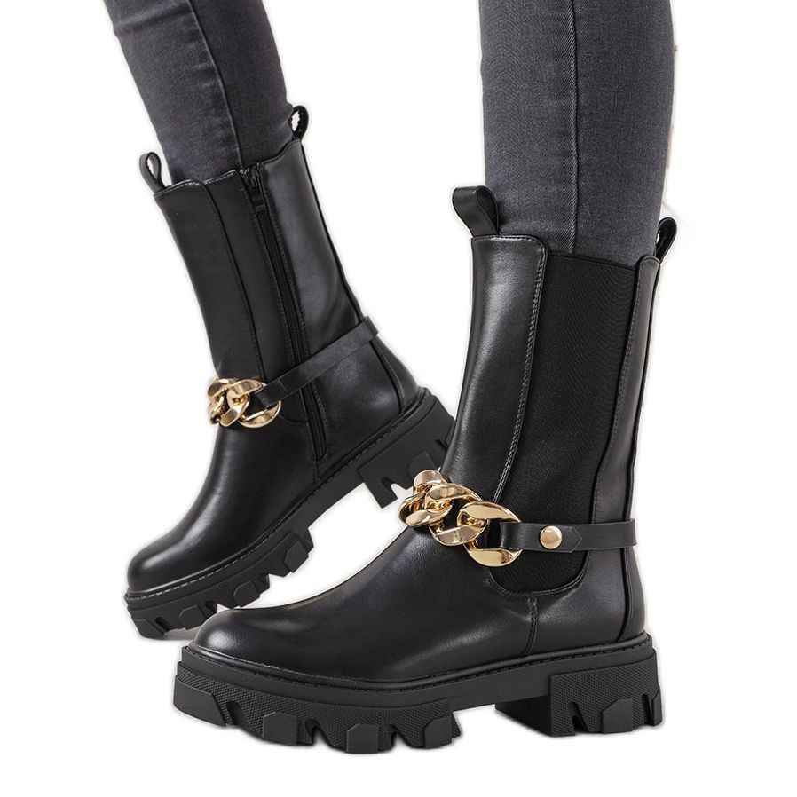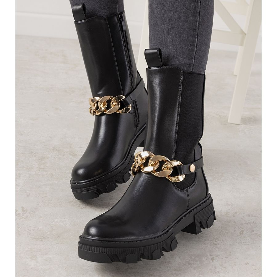 Részletek: Fekete csizma arany lánccal Luce -tól