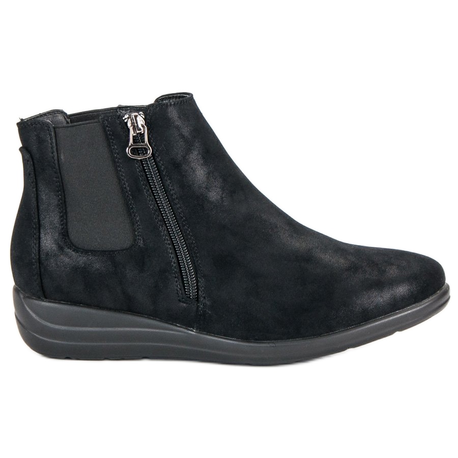 A kiváló minőségű ökológiai velúrbőrből készült csizma tartósságot és vonzó megjelenést biztosít. A belső szigetelés tökéletes megoldást jelent a téli napokra, a kis 4 cm magas ékplatform pedig kényelmes viseletet garantál.