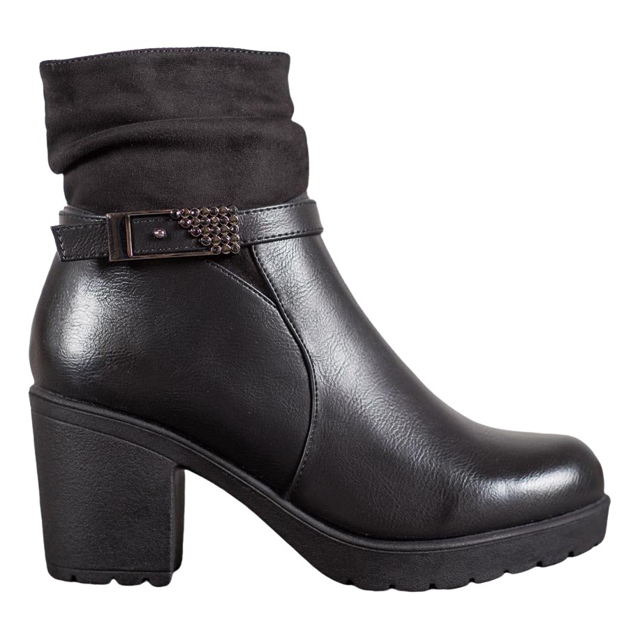 Fedezze fel az eleganciát és a kényelmet a csatos fekete SHELOVET bokacsizmával, amely tökéletes kiegészítője bármilyen női stílusnak. A kiváló minőségű ökológiai bőrből és velúrból készült csizma nem csak stílusos megjelenésű, hanem a láb kényelmét is biztosítja.