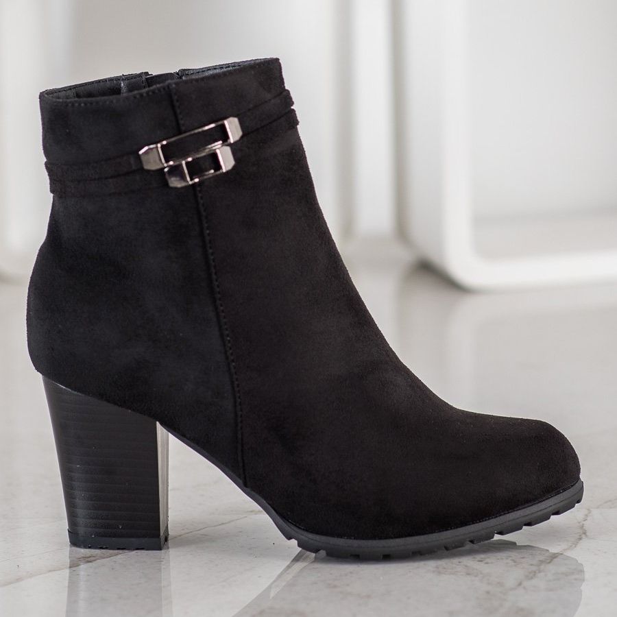 **Jó fekete bokacsizma dekoratív pánttal**