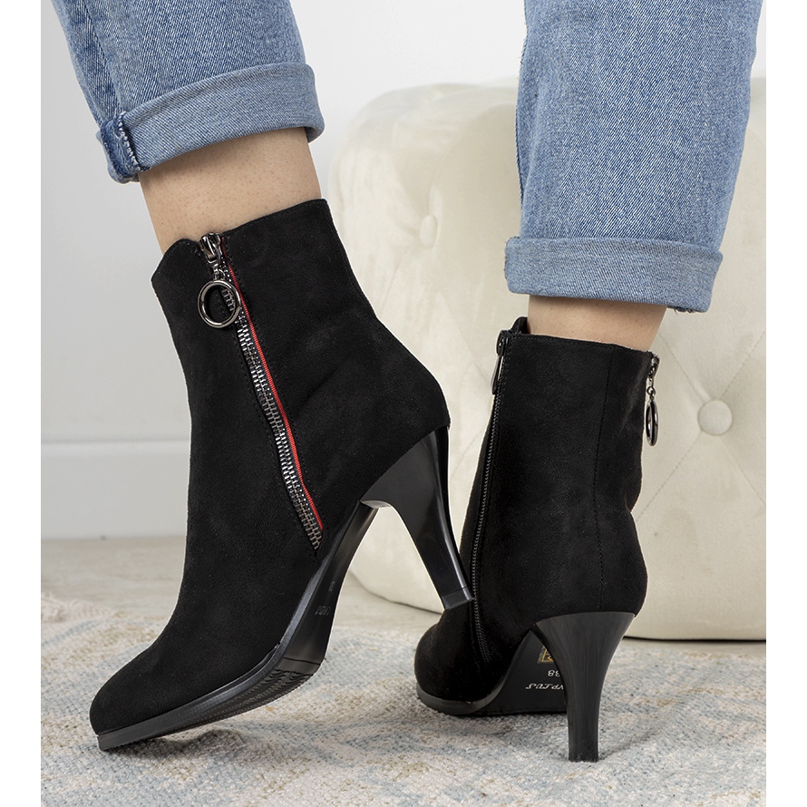 Bemutatjuk a fekete Yoana bokacsizmát dekoratív cipzárral - tökéletes választás minden nő számára, aki ötvözni szeretné a klasszikus stílust a modern stílussal. Ez a kiváló minőségű velúr ökológiai bőrből készült elegáns bokacsizma minden stílus kedvenc eleme lesz.