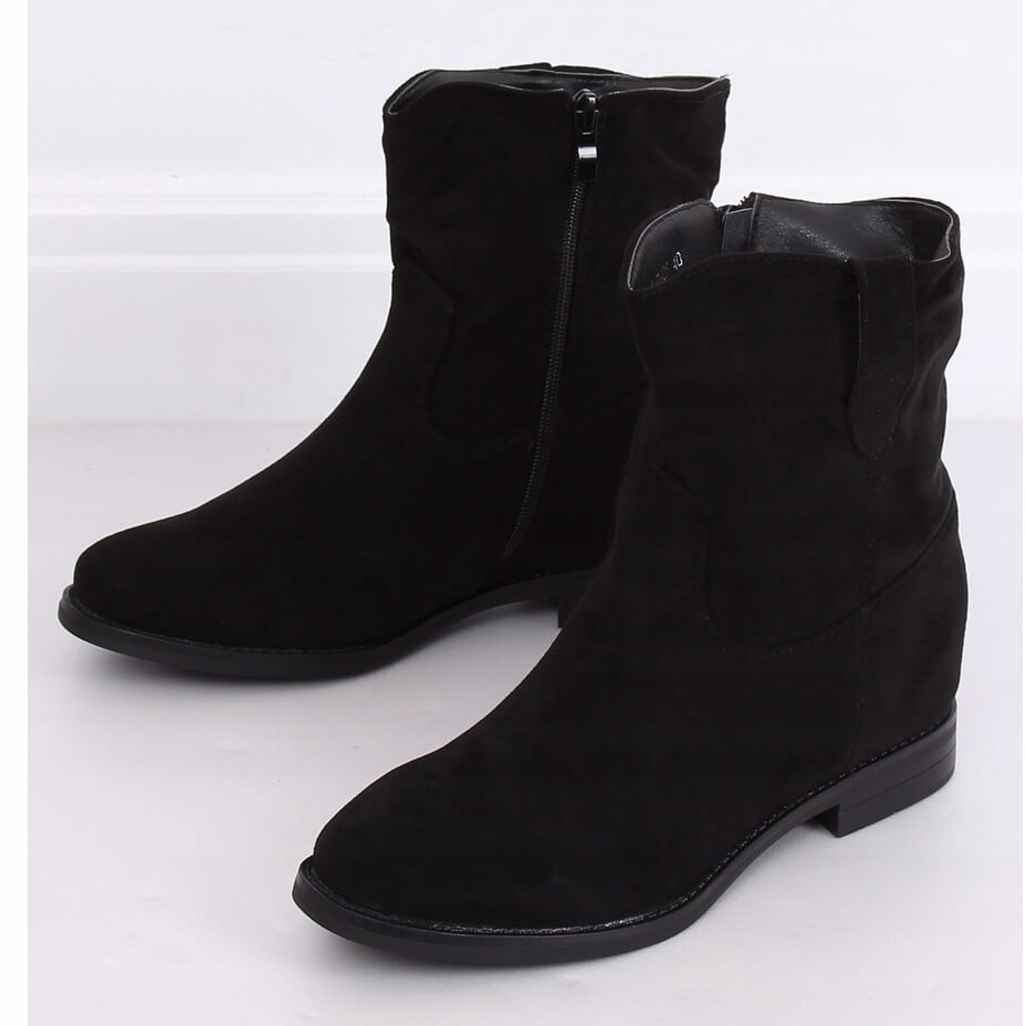 A G-7605 rejtett ékes csizma elegáns fekete színben tökéletes választás minden divatos nő számára. Ez a kiváló minőségű öko-velúrból készült bokacsizma ötvözi a stílust és a kényelmet. Lekerekített orrjuk és 2,5 cm magas rejtett ékük van, ami kényelmes viseletet biztosít egész nap, tökéletes az őszi sétákhoz.