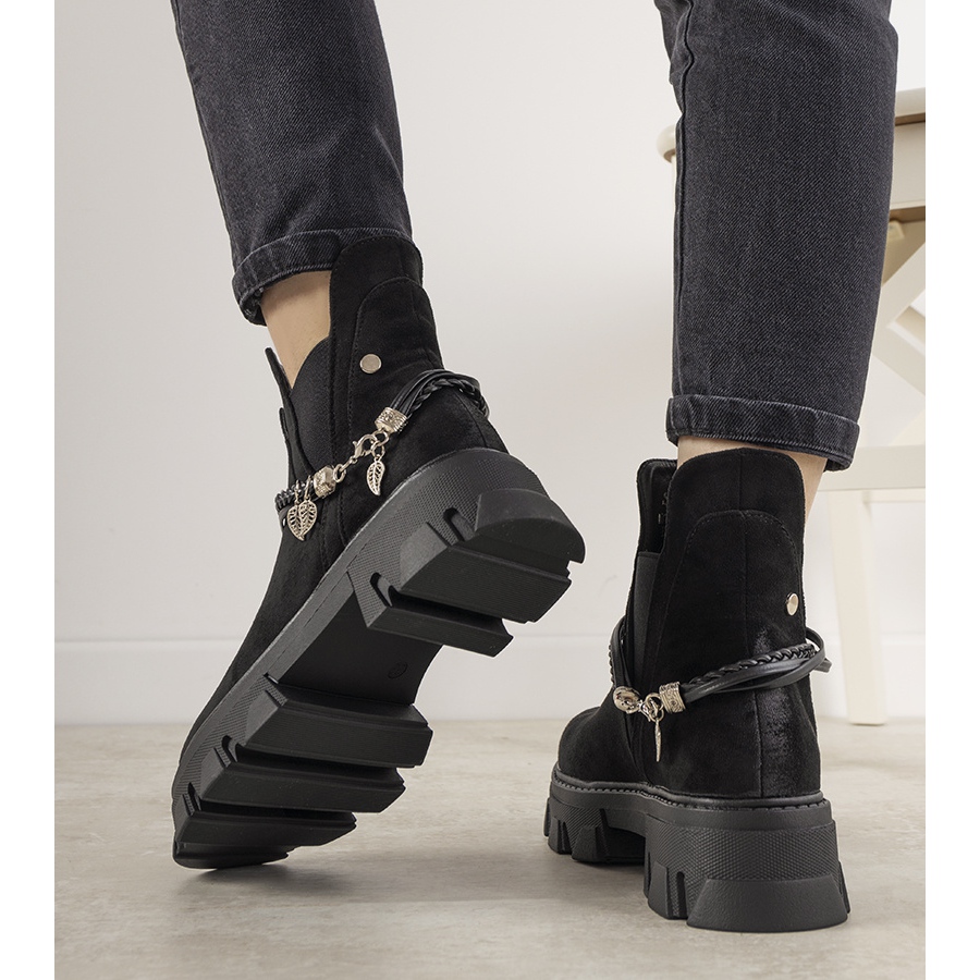 A Fearless karkötővel ellátott fekete csizma tökéletes választás a közelgő őszi-téli szezonra. Ezek a stílusos cipők, amelyek kiváló minőségű ökológiai velúrbőrből készültek, ötvözik az eleganciát és az egyedi karaktert. Kopott hatásuk a lábujjakon eredetiséget ad, a magas, mintás talp pedig szemet gyönyörködtetővé teszi őket.