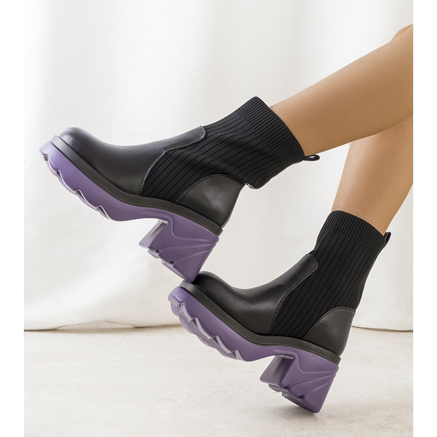 Fekete Tomlin csizma lila talppal - Q747 modell