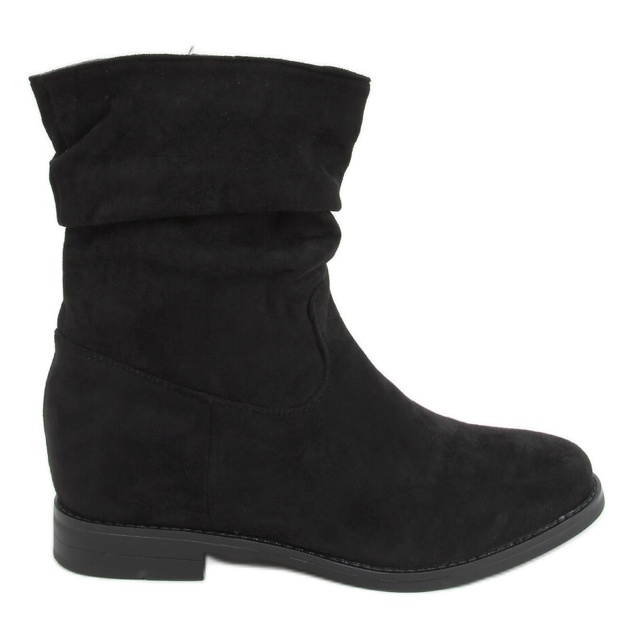 **Fekete rejtett ék alakú bokacsizma D7568 fekete**