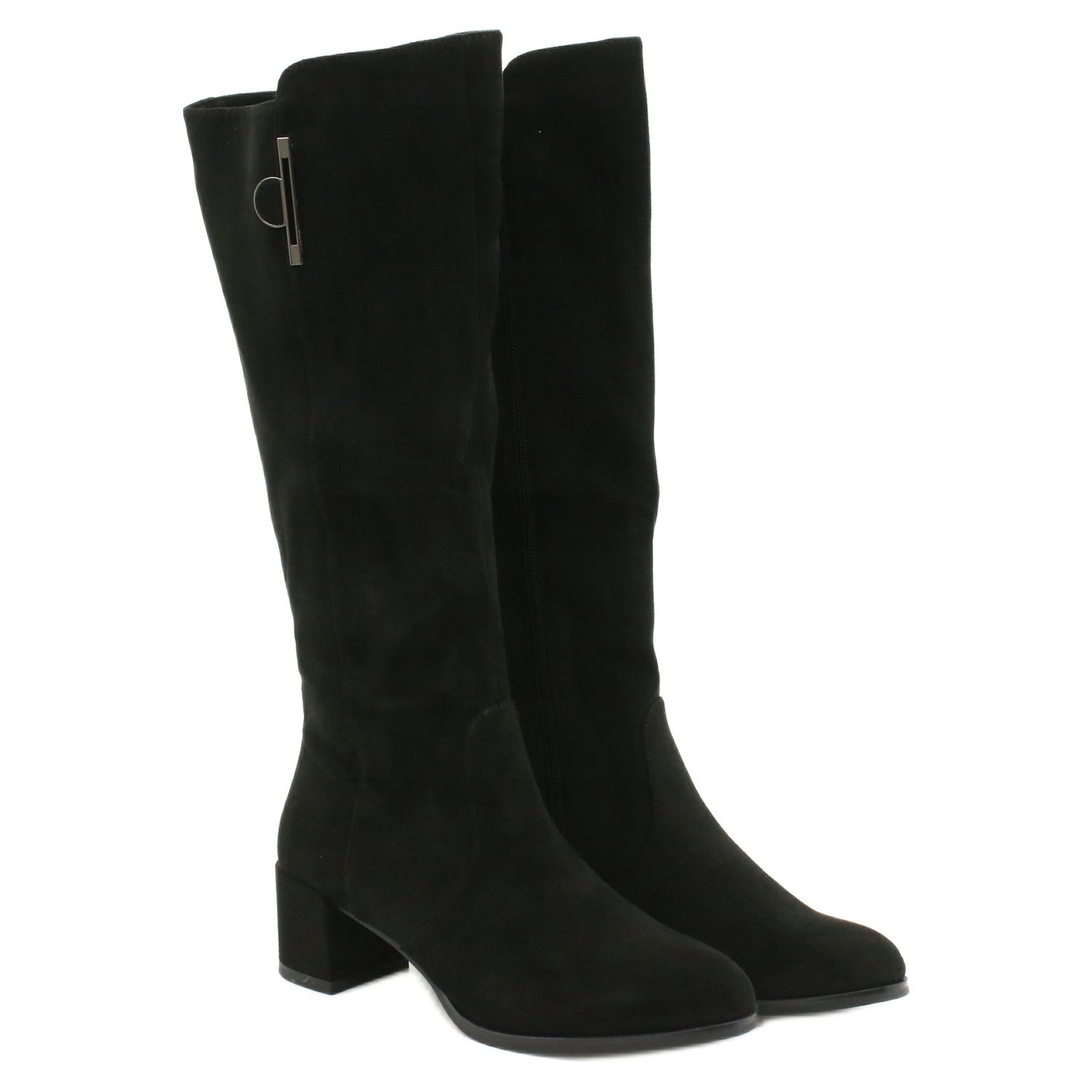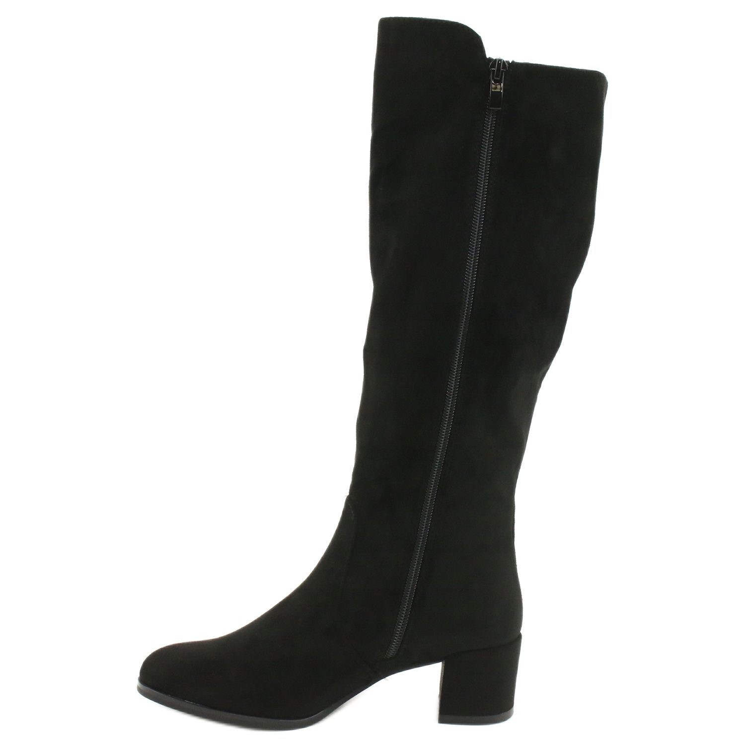 Fedezze fel az eleganciát és a stílust a fekete Sergio Leone KZ277 csizmával. Tökéletes választás minden divatos nő számára, aki értékeli a klasszikus és a modern stílus kombinációját. A csizmák kiváló minőségű ökológiai velúrbőrből készültek, ami nemcsak vonzó megjelenést, hanem tartósságot és viselési kényelmet is biztosít.