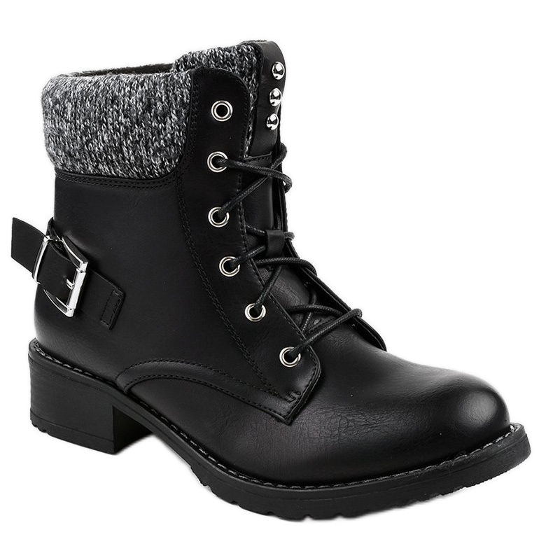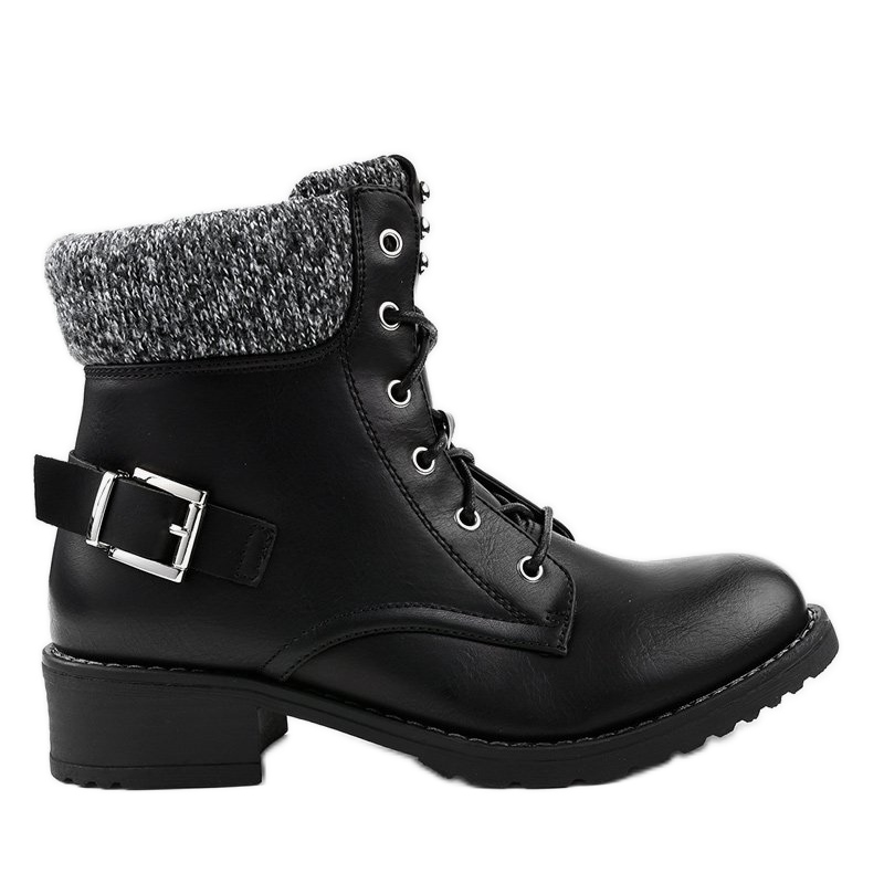 Fekete trapper csizma szigetelés nélkül Z148 - tartós és elegáns egy modern nő számára