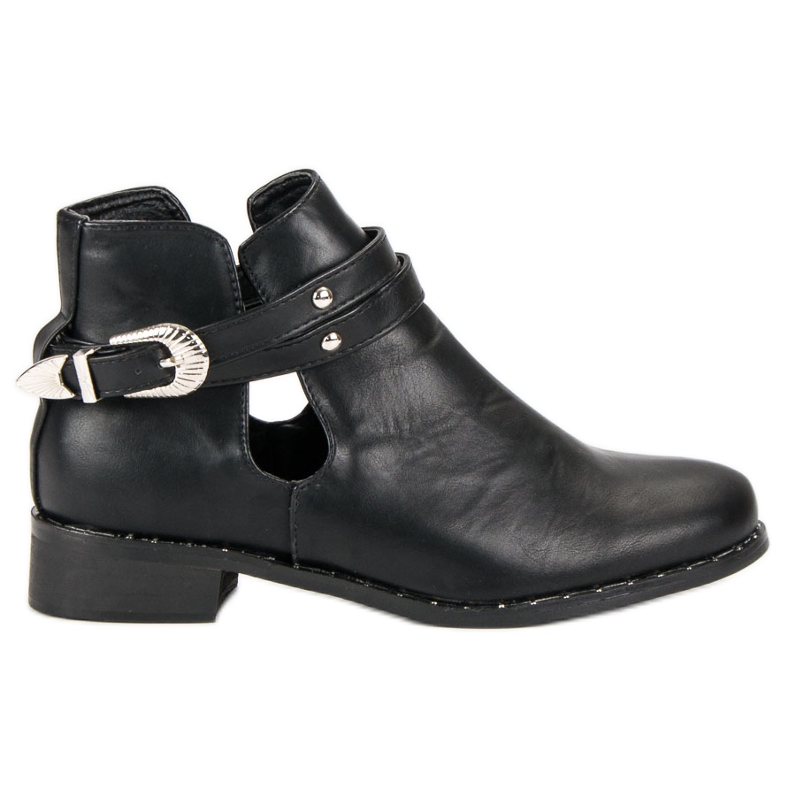 A Butymodne fekete divatos bokacsizmája tökéletes választás a hideg őszi napokra. A kiváló minőségű ökobőrből készült elegáns cipők a stílust a praktikummal ötvözik. A 3 cm magas sarok kényelmes viseletet biztosít, az érdekes fémcsat pedig egyedi karaktert kölcsönöz nekik.