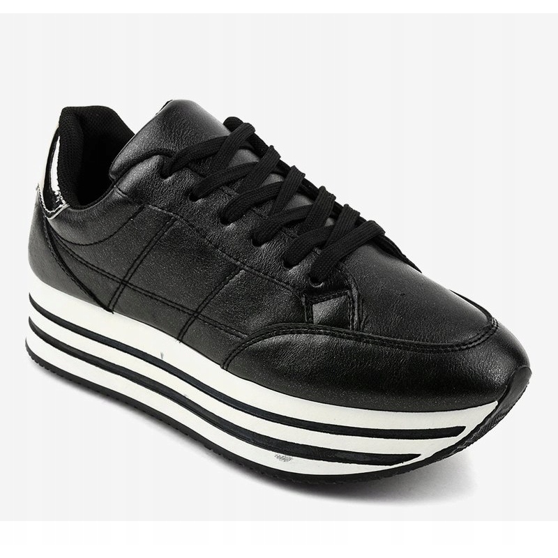 Fekete divatos női sportcipő 230-1 ideális ajánlat azoknak a nőknek, akik fontosnak tartják a stílus és a kényelem kombinációját a fizikai aktivitás során. Ezeket az elegáns sportcipőket a magasabb talp jellemzi, ami nem csak divatos megjelenést kölcsönöz nekik, hanem kényelmes viseletet is. A 4 cm magas ékek finom emelést tesznek lehetővé, ugyanakkor garantálják a stabilitást és a kényelmet minden lépésnél.