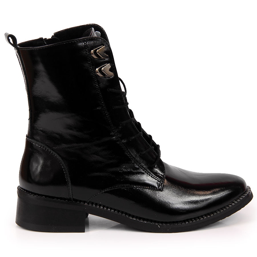 A cipzáras záródásnak és a fűzős részleteknek köszönhetően ez a csizma nem csak stílusos, de funkcionális is. A tiszta fekete színnek köszönhetően könnyen hozzáilleszthetők bármilyen stílushoz – a hétköznapitól a kissé elegánsabbig.