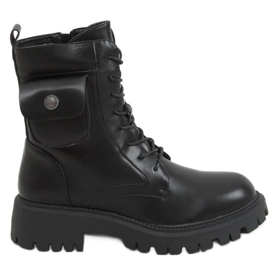 Adjon olyan cipőket ruhatárához, amelyek a divatos dizájnt és a rendkívüli kényelmet ötvözik - JJ06P Fekete munkáscipő zsebbel! Ez az elegáns női bokacsizma tökéletes választás a mindennapokra, amely minden bizonnyal felkelti a figyelmet, és egész napos kényelmet biztosít.