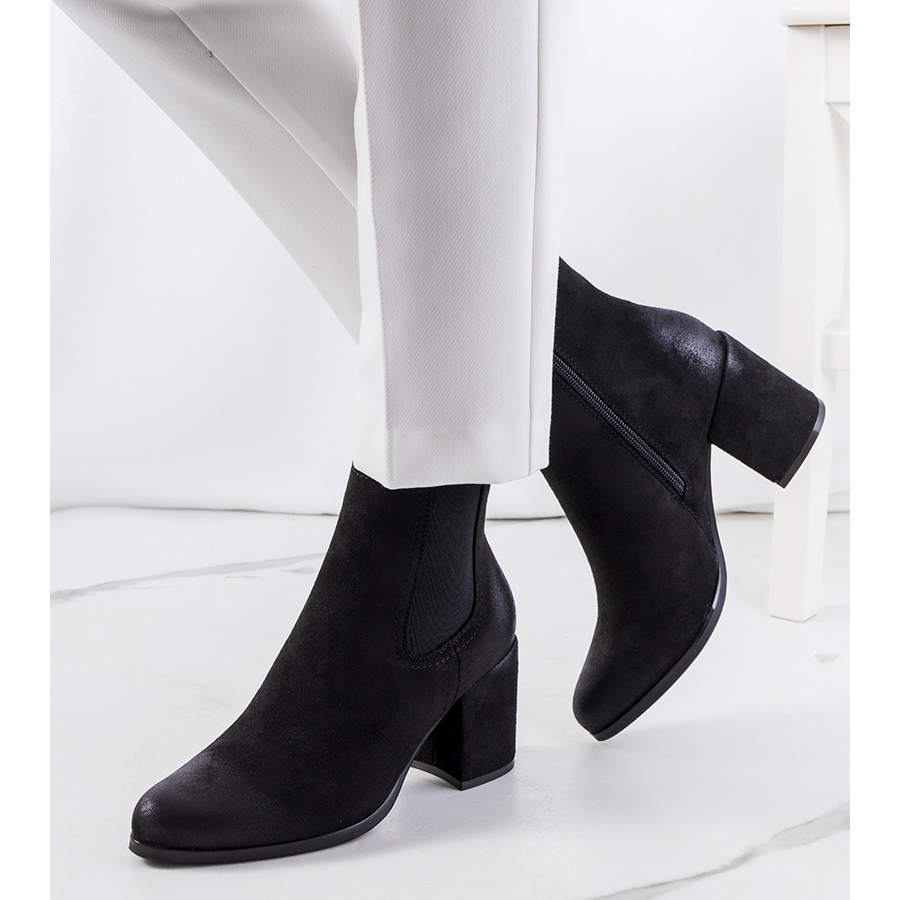 Klasszikus, nőies csizma ökológiai bőrből, velúr textúrával. Belülről cipzárral rögzítve, stabil, közepes oszlopra ágyazva (sarokmagasság: 7 cm). Kissé szigetelve belül, tökéletes hűvösebb napokra. Szabványos számozás - Kérjük, válassza ki a szokásos méretét.