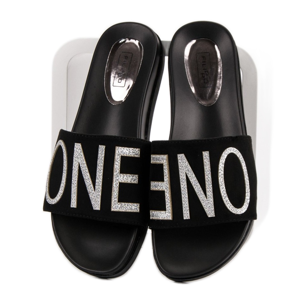 A Filippo Czarne Klapki One tökéletes választás minden nő számára, aki kényelmes és stílusos mindennapi papucsot keres. Klasszikus fekete színükkel és jellegzetes betűivel ezek a papucsok minden ruhát felpezsdítenek azzal, hogy egy kis modern hatást adnak hozzá.